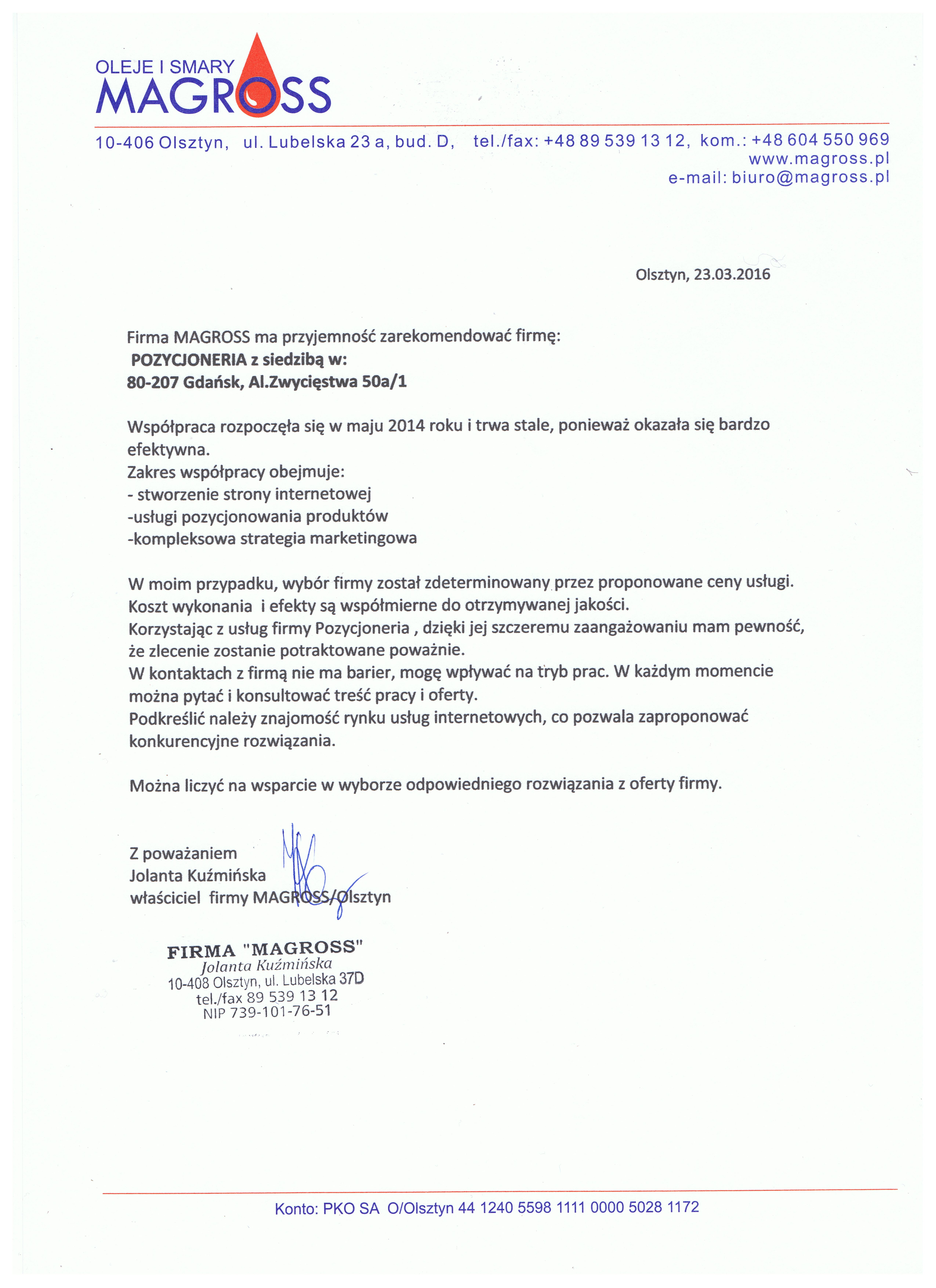 - Projekt wykonany dla firmy magross zajmującej się sprzedażą olejów i smarów
